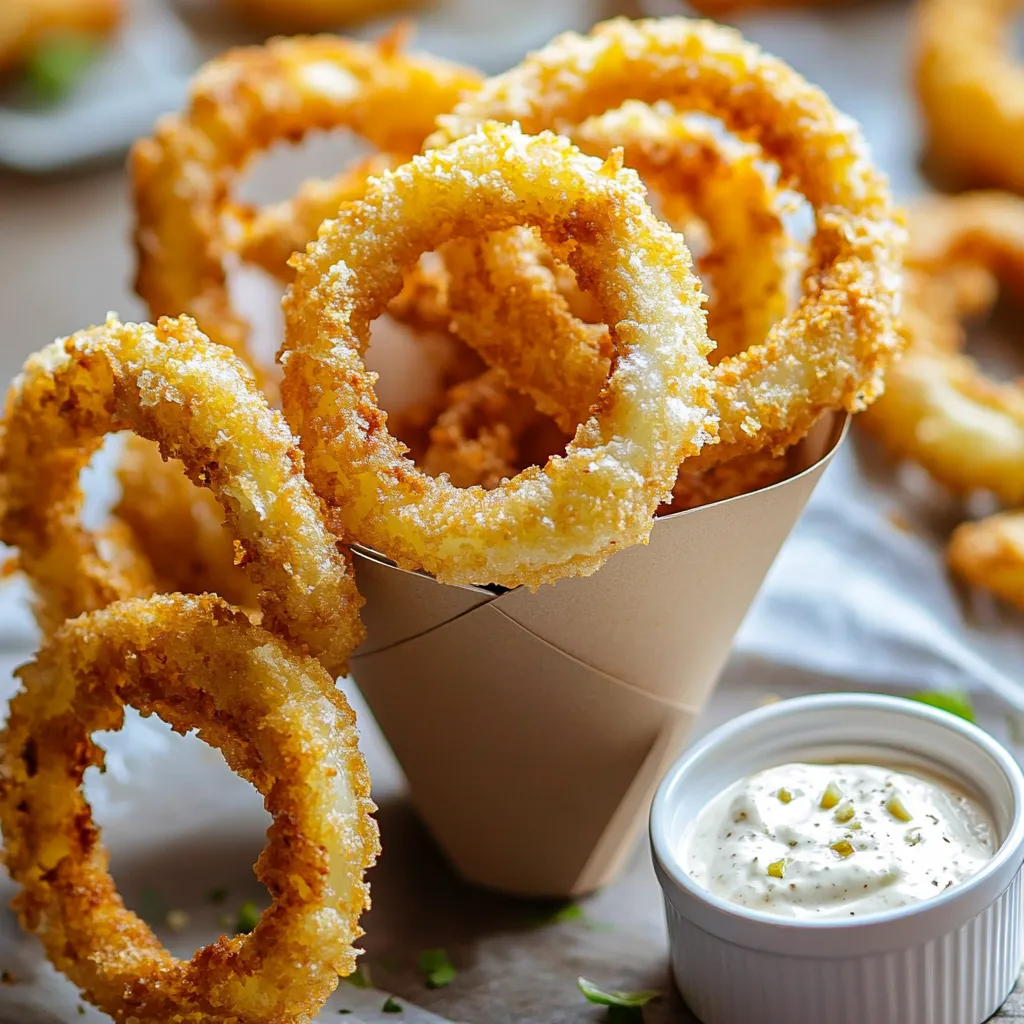 To keep your onion rings warm, place them on a baking sheet in a low oven. Set it to about 200°F (93°C). This way, you can cook them in batches without losing warmth and crunch. Enjoy your crispy onion rings fresh!