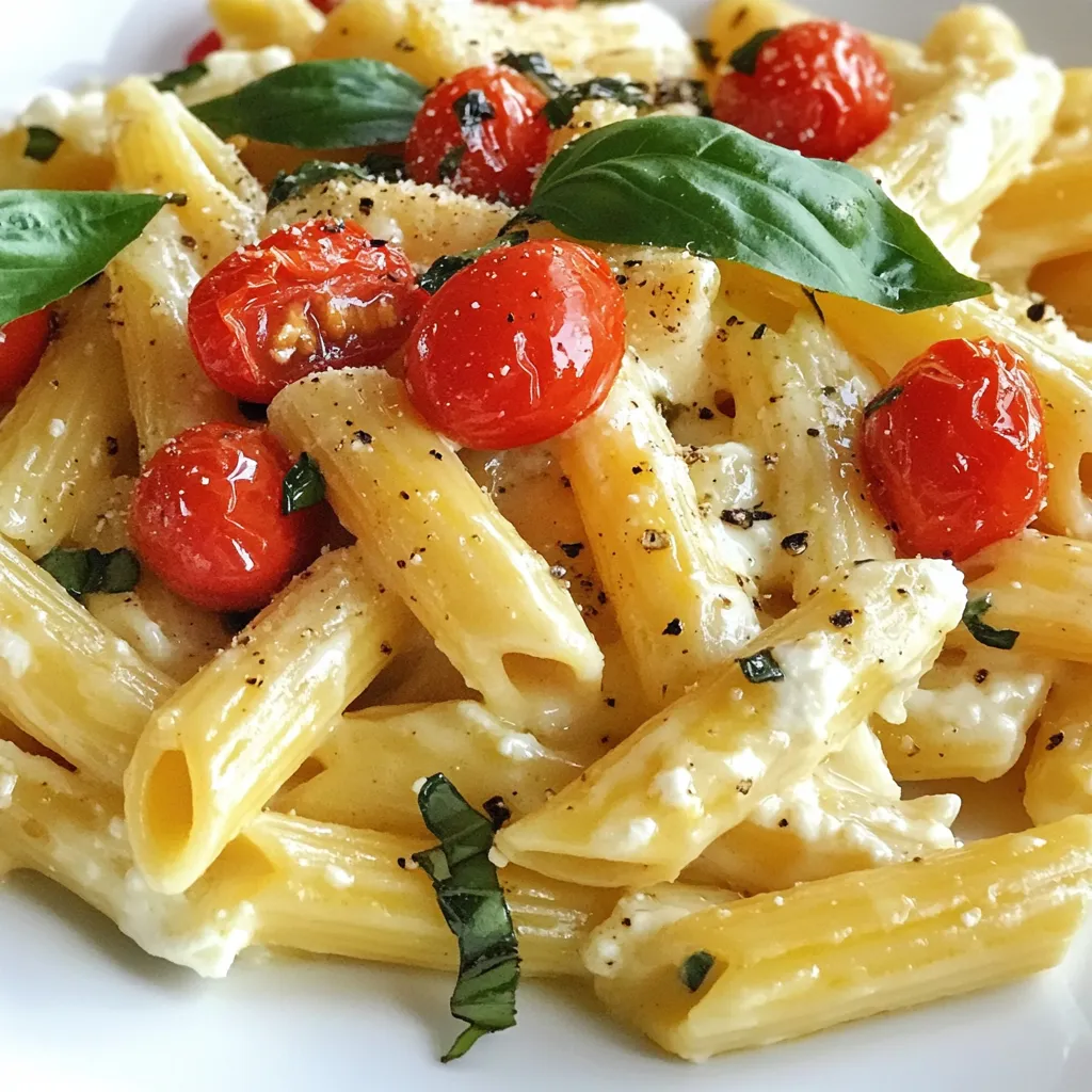 A creamy and flavorful pasta dish featuring baked feta cheese and cherry tomatoes.