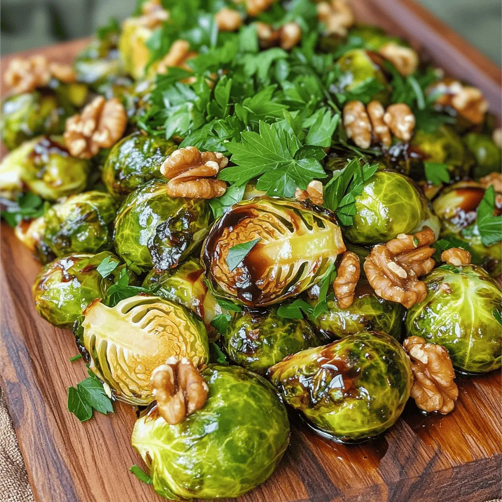 Balsamic glazed Brussels sprouts pair well with many dishes. They go great with roasted chicken or pork. Serve them alongside quinoa for a healthy meal. You can also include them in a salad with mixed greens. Their sweet and savory taste adds depth to any plate. Enjoy exploring different combinations!