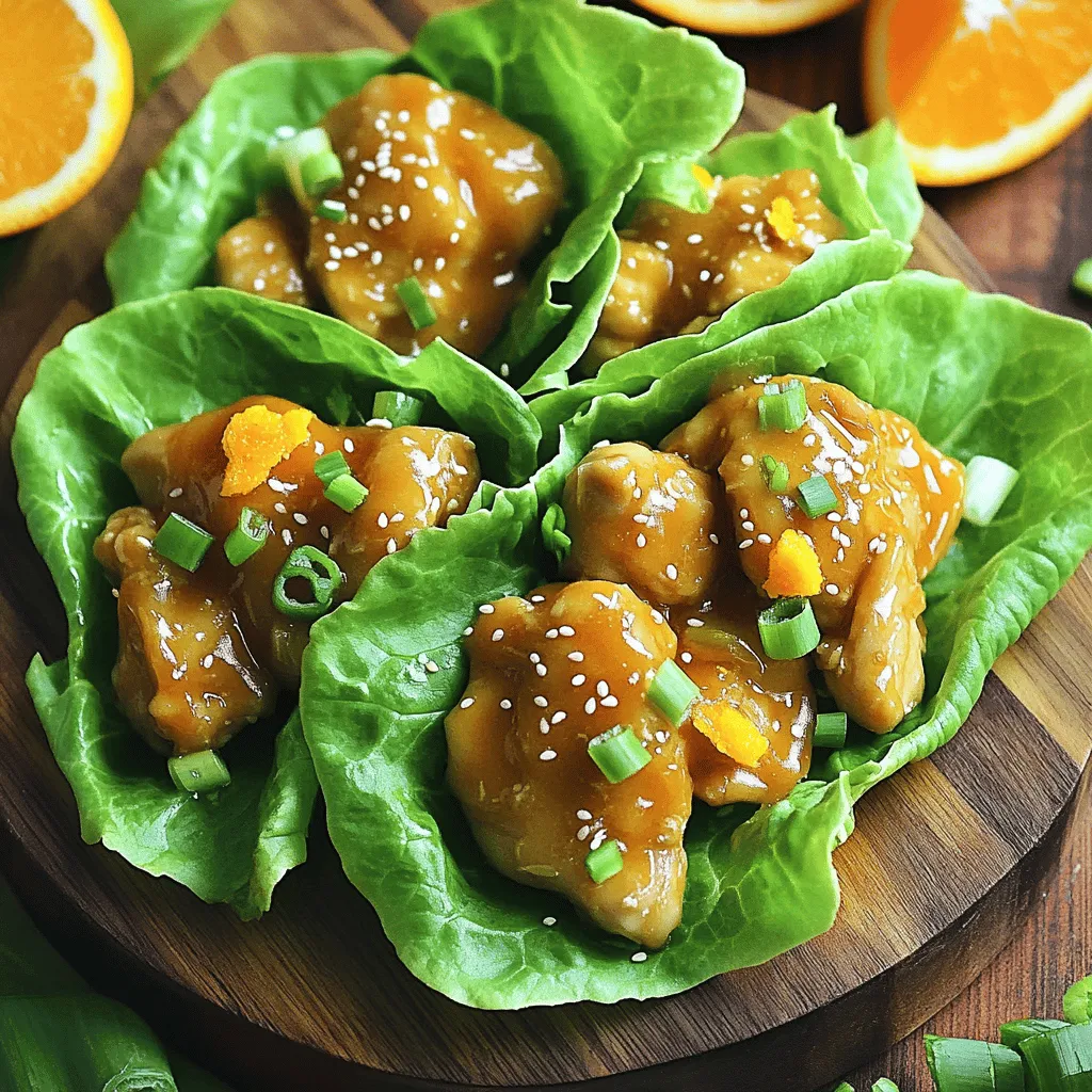 To keep your Orange Chicken Lettuce Wraps fresh, store leftovers properly. First, let the wraps cool to room temperature. Then, place them in an airtight container. They stay good in the fridge for up to three days. If you have extra chicken mixture, store it separately from the lettuce. This helps keep the lettuce crisp.