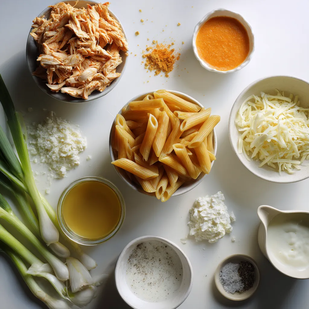 To make Buffalo Chicken Pasta Bake, gather these simple items: