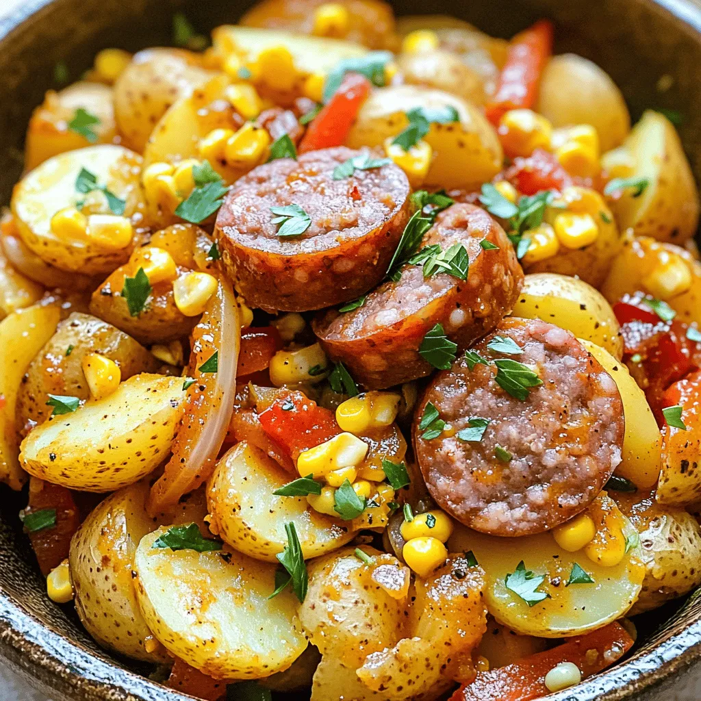 To create a flavorful Cajun Sausage Potato Skillet, you need some key ingredients. First, choose a smoked sausage. Andouille adds a spicy kick, while kielbasa offers a milder taste. Next, you’ll need potatoes. Diced potatoes give the dish a hearty feel. You can leave the skin on or peel them, depending on your preference.