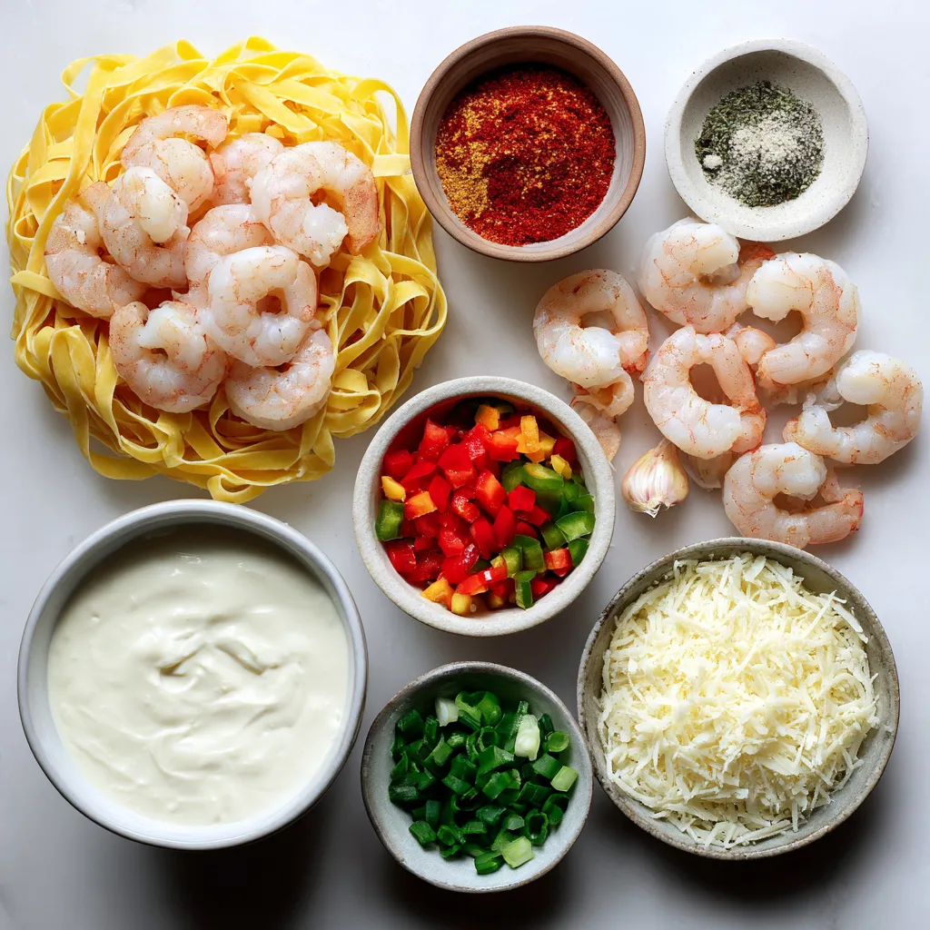 For Cajun Shrimp Alfredo Pasta, you need a few key items. First, the fettuccine pasta gives the dish its classic structure. I prefer large shrimp for their tender bite and flavor. Cajun seasoning adds the spice that makes this meal pop.