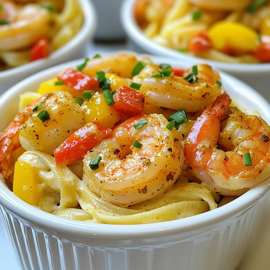 A creamy and spicy pasta dish featuring shrimp seasoned with Cajun spices.