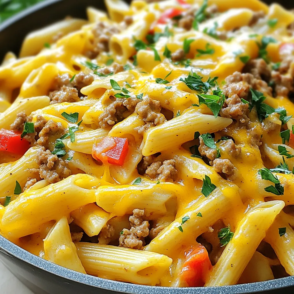 - 1 lb ground turkey - 8 oz penne pasta - 1 tablespoon Cajun seasoning - 1 medium onion, diced - 1 bell pepper (any color), diced - 2 cloves garlic, minced - 1 cup diced tomatoes (canned or fresh) - 1 cup chicken broth - 1 cup heavy cream - 1 cup shredded cheddar cheese - Fresh parsley, chopped for garnish To make Cajun Turkey Pasta Skillet, gather these ingredients first. Start with the ground turkey, which gives the dish its protein. The penne pasta adds a nice texture and helps soak up flavors. Cajun seasoning is key for that punchy taste. Next, chop your vegetables. The onion and bell pepper bring sweetness and crunch. Garlic adds depth to the dish. Then, you need some liquids. Diced tomatoes give a fresh taste and color. Chicken broth adds richness, while heavy cream makes the sauce creamy and smooth. Finally, consider your garnishes. Shredded cheddar cheese melts beautifully on top. Fresh parsley adds a splash of color and freshness. These ingredients come together to make a meal that's quick, tasty, and satisfying. {{ingredient_image_1}} - First, dice one medium onion and one bell pepper. Use any color you like. - Next, mince two cloves of garlic. This adds great flavor to our dish. - Measure out one tablespoon of Cajun seasoning and one cup of chicken broth. - Finally, get one cup of heavy cream and one cup of diced tomatoes ready. - In a large skillet, heat two tablespoons of olive oil over medium heat. - Add the diced onion and bell pepper. Sauté them for about 3-4 minutes until they soften. - Then, add the minced garlic and one pound of ground turkey to the skillet. Cook for 6-8 minutes until the turkey is browned and fully cooked. - Now, stir in the Cajun seasoning. Make sure the turkey is well coated with spices. - Add the diced tomatoes, one cup of chicken broth, and 8 ounces of penne pasta to the skillet. - Bring everything to a simmer. Cover it and cook for 12-15 minutes until the pasta is al dente. Stir occasionally to keep it from sticking. - Once the pasta is cooked, reduce the heat. Stir in one cup of heavy cream. Cook for another 2-3 minutes until it becomes creamy. - Sprinkle one cup of shredded cheddar cheese on top. Stir until the cheese melts and blends well. - Lastly, season with salt and pepper to taste. You can adjust to your liking. To make this dish shine, try adjusting the Cajun seasoning. If you like heat, add more. For a milder taste, use less. You can also mix in some smoked paprika for a deeper flavor. To enhance creaminess, consider adding more heavy cream. You can also stir in a bit of cream cheese. This gives it a rich texture that many love. When sautéing, make sure your oil is hot. This helps the onions and bell peppers cook evenly. Stir them often for about 3-4 minutes. You want them soft but not brown. Managing pasta texture is key. Cook the penne until it's al dente. This means it should be firm when bitten. If you overcook it, the pasta gets mushy. Always stir the pasta as it cooks. This keeps it from sticking together. For pairing ideas, serve this dish with a side salad. A fresh green salad balances the meal well. You can also add garlic bread for a tasty side. Recommended side dishes include steamed veggies or a light soup. Both are great options that complement the Cajun flavor. Enjoy your meal! Pro Tips Use Fresh Ingredients: Fresh vegetables and herbs can significantly enhance the flavor of your dish. Opt for fresh bell peppers and parsley for a vibrant taste. Customize the Spice Level: Adjust the amount of Cajun seasoning to suit your taste preference. For a milder dish, start with less and add more as desired. Leftover Transformation: This dish reheats beautifully! Use leftovers in a wrap or salad for a quick meal the next day. Perfect Pasta Cooking: Stir the pasta occasionally while it simmers to prevent it from sticking together and ensure even cooking. {{image_2}} You can switch ground turkey for other proteins. Chicken works well, giving a lighter taste. Simply use ground chicken in the same way. You can also try sausage. It adds a nice kick and flavor. Just brown it with the onions and bell pepper. If you prefer a meat-free meal, consider using plant-based meat. It mimics ground turkey's texture and flavor. Look for options at your local store. They usually cook the same way, so it’s easy to swap! You don’t have to stick with penne pasta. Try other shapes like rotini or fusilli. They hold sauce well, making each bite tasty. If you want a healthy choice, use whole grain pasta. It adds fiber and keeps you full longer. Gluten-free pasta is another option. There are many kinds made from rice or chickpeas. Just check the package for cooking times. Adding different vegetables can change the dish. You could toss in spinach, zucchini, or mushrooms. They add color and nutrition. Feel free to be creative! If you like spice, play with the Cajun seasoning. Add more for heat or try a dash of hot sauce. You can also mix in smoked paprika for a deeper flavor. Adjust these to match your taste. Cooking should be fun! To store leftovers, place them in an airtight container. This keeps your Cajun turkey pasta fresh. Make sure to cool it down before sealing. You can keep it in the fridge for up to three days. When reheating, the best method is on the stove. Use low heat and add a splash of chicken broth. This helps keep the dish creamy and moist. You can also microwave it, but stir it halfway through. This ensures even heating. You can freeze Cajun turkey pasta for up to three months. To freeze, let it cool completely. Then, place it in a freezer-safe container or bag. Make sure to label it with the date for easy tracking. When you’re ready to eat, thaw it overnight in the fridge. Reheat it in a skillet over low heat. Add a bit of chicken broth as needed to restore creaminess. In the fridge, this dish lasts three days when stored properly. Watch for signs of spoilage like a sour smell or mold. If it smells off or looks unusual, it’s best to 