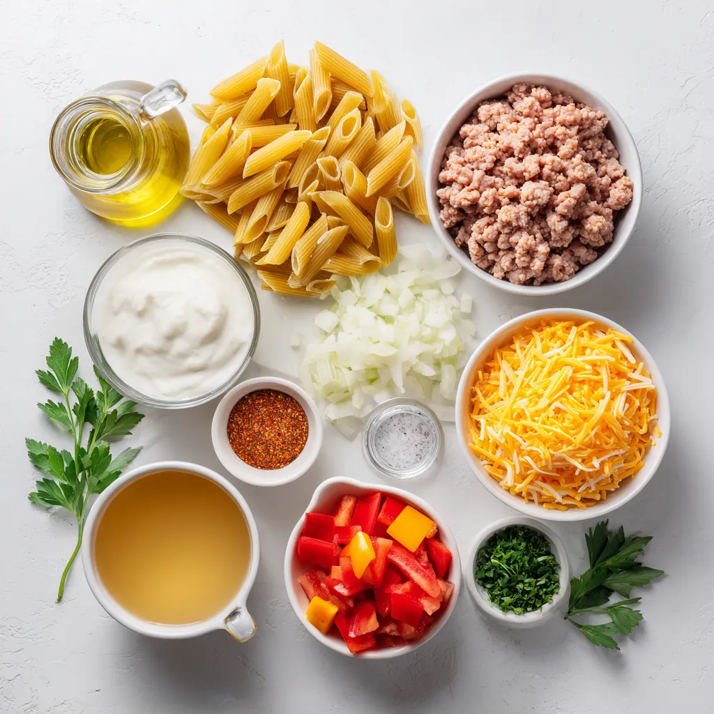 To make Cajun Turkey Pasta Skillet, gather these ingredients first. Start with the ground turkey, which gives the dish its protein. The penne pasta adds a nice texture and helps soak up flavors. Cajun seasoning is key for that punchy taste.