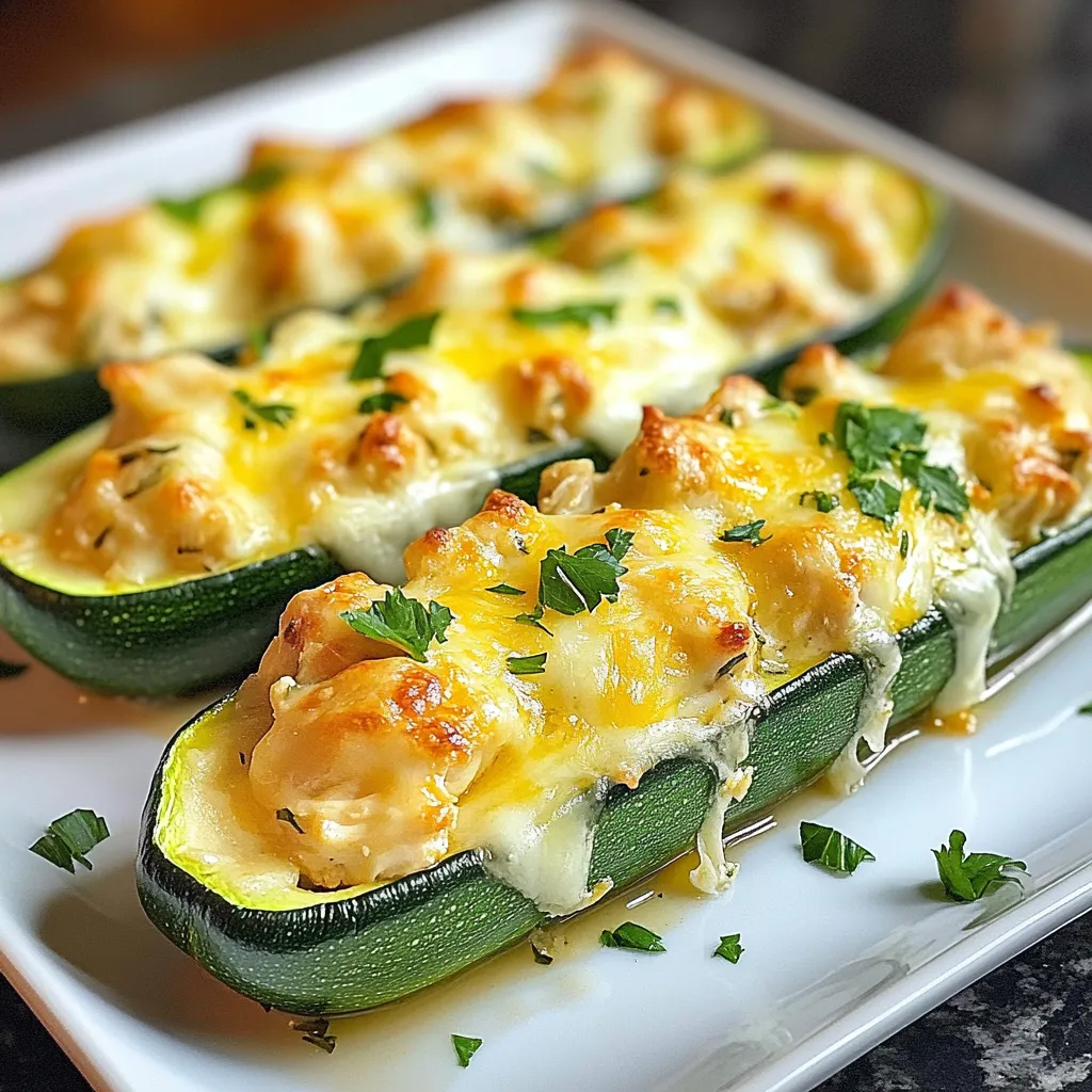 These ingredients work together to create a tasty and filling dish. The zucchinis serve as boats, holding the creamy filling. The chicken and cheese add protein and flavor.