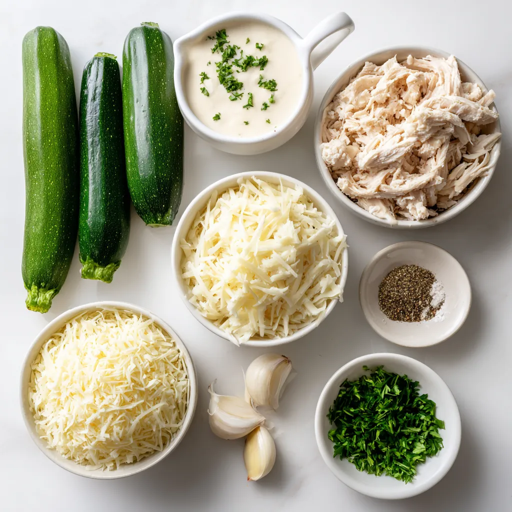 Main Ingredients for Chicken Alfredo Zucchini Boats