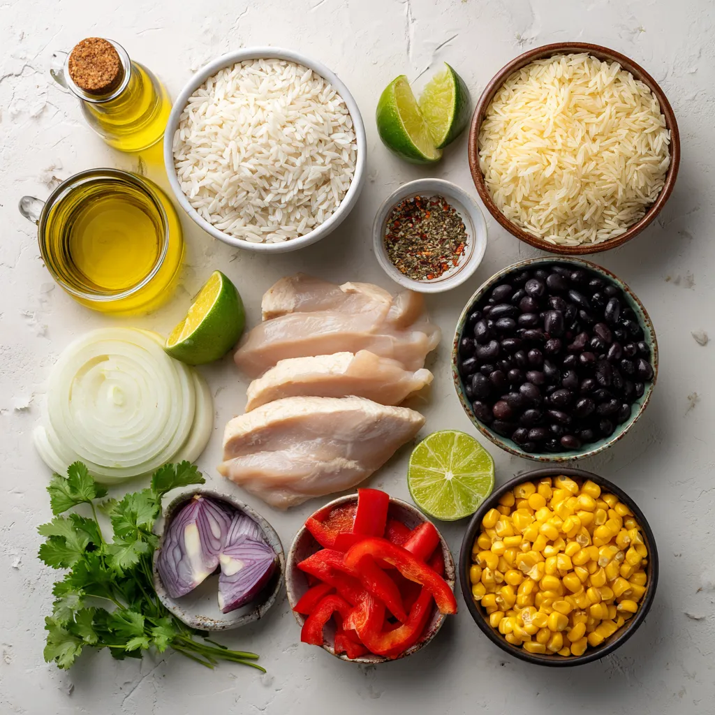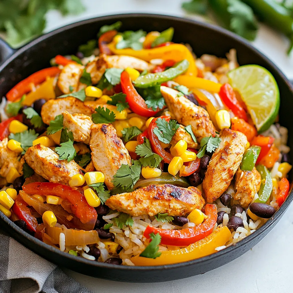 A flavorful one-pan dish combining chicken, rice, and fajita-seasoned vegetables.