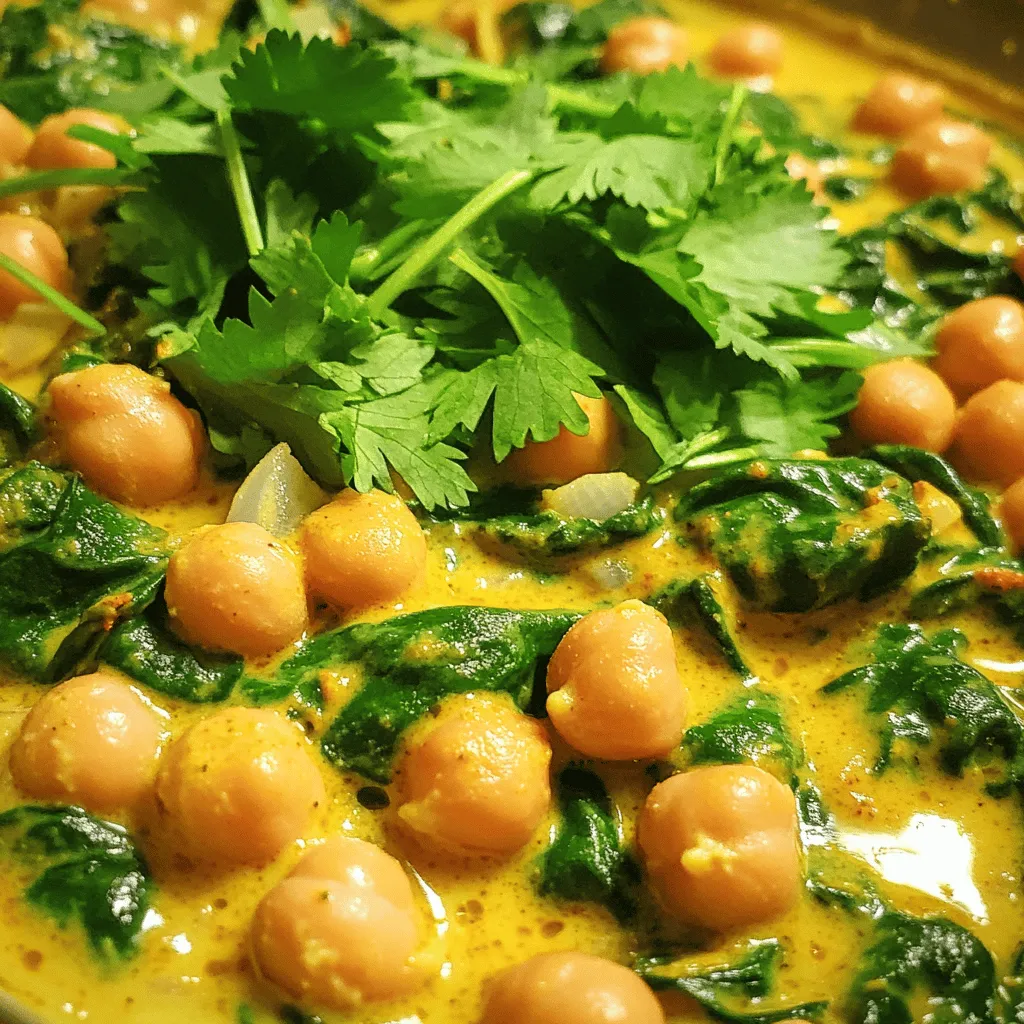 – Garnish with fresh cilantro on top for a pop of color and freshness. Enjoy your delicious Chickpea Spinach Curry!