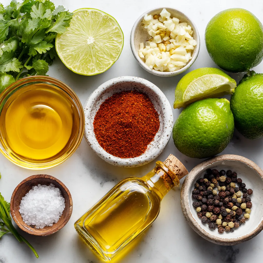 Start by whisking together the marinade ingredients. In a bowl, mix the fresh lime juice, olive oil, honey, and minced garlic. Then, add the chili powder, cumin, paprika, salt, black pepper, and lime zest.