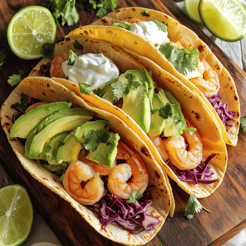 Another great twist is using an avocado cream sauce. To make this, blend ripe avocado with sour cream and lime juice. This sauce adds a smooth, creamy texture to your tacos. The flavor pairs well with the shrimp and adds richness. Drizzle it over the tacos just before serving. You will love the contrast of flavors and textures.