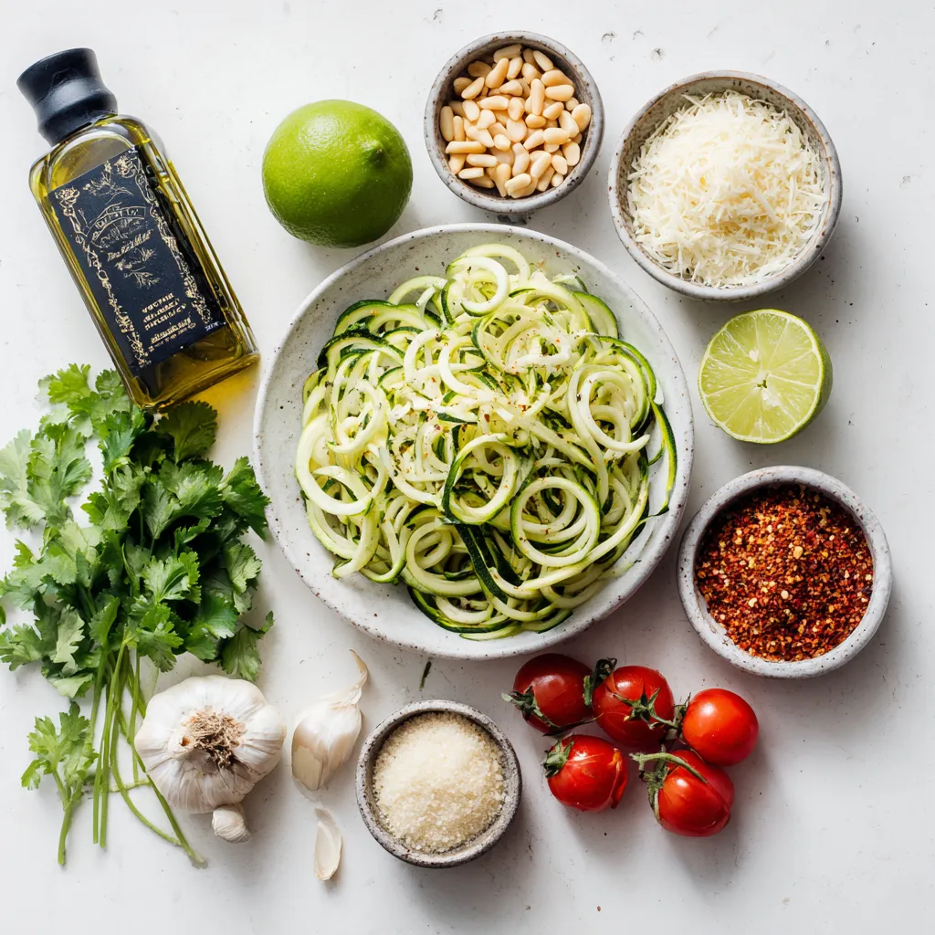To make Cilantro Pesto Zucchini Noodles, you need simple, fresh ingredients. Here’s a complete list of what you will need: