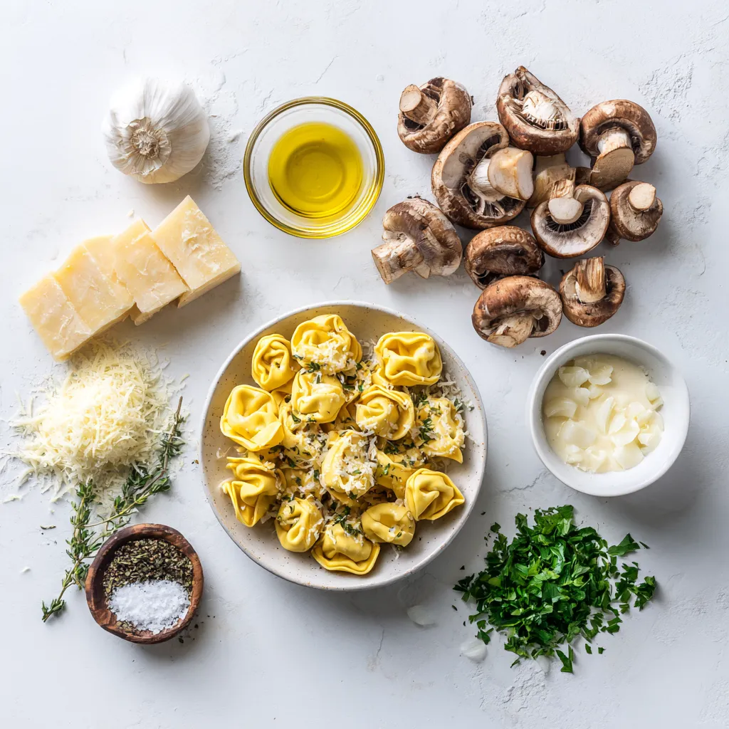 Here’s a list of everything you need for Creamy Garlic Mushroom Tortellini:
