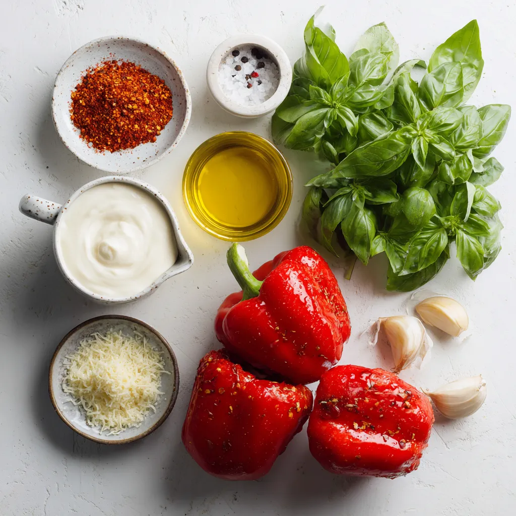 – Roasted red peppers: You’ll need 2 large red bell peppers, roasted and peeled.
