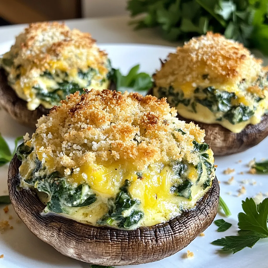 To make creamy spinach stuffed mushrooms, you need a few simple ingredients. Here’s what you’ll need: - 12 large portobello mushrooms, stems removed - 2 cups fresh spinach, chopped - 1 cup cream cheese, softened - 1/2 cup grated parmesan cheese - 1/4 cup breadcrumbs - 2 cloves garlic, minced - 1/4 teaspoon nutmeg - Salt and pepper to taste - 2 tablespoons olive oil - Fresh parsley, chopped (for garnish) These ingredients work in harmony to create a rich and savory filling. The portobello mushrooms serve as the perfect base. They are large and meaty, providing a satisfying bite. Fresh spinach adds color and nutrients, while cream cheese brings creaminess. Parmesan gives a nice salty kick, and garlic adds depth. Breadcrumbs help bind it all together, and nutmeg enhances the flavor profile. Use good-quality ingredients for the best results. Fresh spinach brightens the dish, and high-quality cheeses make the filling extra special. Don't forget to season well with salt and pepper. This step is key to balancing all the flavors. With these ingredients ready, you can create a delicious appetizer that impresses everyone at your table. {{ingredient_image_1}} 1. Preheat your oven to 375°F (190°C). This step is key to a perfect bake. 2. Grab a baking tray and line it with parchment paper. This makes cleanup easy. 3. In a skillet, add 2 tablespoons of olive oil over medium heat. 4. Once hot, add 2 cloves of minced garlic. Sauté for about 1 minute. You want it fragrant but not burnt. 5. Add 2 cups of chopped fresh spinach to the skillet. Cook until it wilts, about 3-4 minutes. 6. Season the spinach with 1/4 teaspoon of nutmeg, salt, and pepper. Remove from heat and let it cool slightly. 1. In a large bowl, combine the cooked spinach with 1 cup of softened cream cheese. 2. Add 1/2 cup of grated parmesan cheese and 1/4 cup of breadcrumbs to the mix. 3. Stir everything well until fully combined. This will be your creamy filling. 1. Take each of the 12 large portobello mushrooms and remove the stems. 2. Generously stuff each mushroom cap with the creamy spinach mixture. 3. Place the stuffed mushrooms on your prepared baking tray. 4. Bake in the preheated oven for 20-25 minutes. Look for tender mushrooms and golden filling. 5. Once done, remove them from the oven and let them cool for a few minutes. 6. Garnish with chopped parsley before serving for a fresh touch. - Choosing the right mushrooms: I prefer large portobello mushrooms for this recipe. They hold up well and have a rich flavor. Make sure they are fresh and free of bruises. Look for mushrooms that are firm and plump. Clean them gently with a damp cloth before using. - Ensuring the filling is creamy: Use softened cream cheese for a smooth texture. This makes mixing easy and ensures every bite is rich. I add grated parmesan for depth and a hint of saltiness. Don't forget to mix in the cooked spinach well. This makes sure the filling is evenly creamy throughout. - Avoiding overcooking the mushrooms: Keep an eye on your baking time. I suggest baking for 20 to 25 minutes. This way, the mushrooms get tender but do not lose their shape. Overcooked mushrooms can become mushy and less enjoyable. - Perfecting the baking time: Every oven is different, so check your mushrooms at 20 minutes. Look for a golden filling and soft caps. If they need more time, check every 2 to 3 minutes. This helps you avoid burning the tops while ensuring they are cooked through. Pro Tips Choose the Right Mushrooms: Opt for large portobello mushrooms for a sturdy base that can hold the creamy filling without falling apart. Enhance the Flavor: Add a splash of lemon juice or a sprinkle of red pepper flakes to the filling for an extra zing. Make Ahead: Prepare the filling and stuff the mushrooms a few hours in advance. Keep them covered in the fridge until you’re ready to bake. Perfect Baking: For an even more golden top, broil the stuffed mushrooms for the last 2-3 minutes of baking, watching closely to prevent burning. {{image_2}} You can switch up the cheeses in this recipe. Cream cheese is rich, but you can try ricotta or goat cheese for a twist. Both add unique flavors. If you want to make it lighter, use low-fat cream cheese. Adding extra vegetables can boost flavor and nutrition. Chopped artichokes or sun-dried tomatoes work well. You can also add bell peppers or zucchini. Just sauté them with the spinach for a few minutes. Enhancing the flavor is easy. Adding spices like red pepper flakes brings heat. Fresh herbs like basil or thyme can add freshness. Mix in some lemon zest for a bright taste. You can also change the breadcrumbs. Panko breadcrumbs give a nice crunch. For a different taste, try using crushed crackers or cornmeal. Each option brings a new texture and flavor to your dish. To store your leftover creamy spinach stuffed mushrooms, let them cool first. Place them in an airtight container. This helps keep them fresh and tasty. Use a container that fits snugly. If you have many mushrooms, stack them carefully to avoid squishing. They stay good in the fridge for up to three days. To reheat stuffed mushrooms, use the oven for the best results. Preheat it to 350°F (175°C). Place the mushrooms on a baking tray. Cover them with foil to keep them moist. Heat for about 10-15 minutes. If you're in a hurry, use the microwave. Place them on a microwave-safe plate. Heat them for about 1-2 minutes. Keep an eye on them to avoid overcooking. This method may change the texture slightly. Enjoy the same great flavor after reheating! Can I make these ahead of time? Yes, you can prepare these stuffed mushrooms ahead of time. After you fill them, cover and store them in the fridge. This keeps them fresh for up to 24 hours. When you are ready, just bake them as directed. What can I serve with Creamy Spinach Stuffed Mushrooms? These tasty mushrooms pair well with many dishes. You can serve them with a fresh salad or garlic bread. They also work great as an appetizer with a dip
