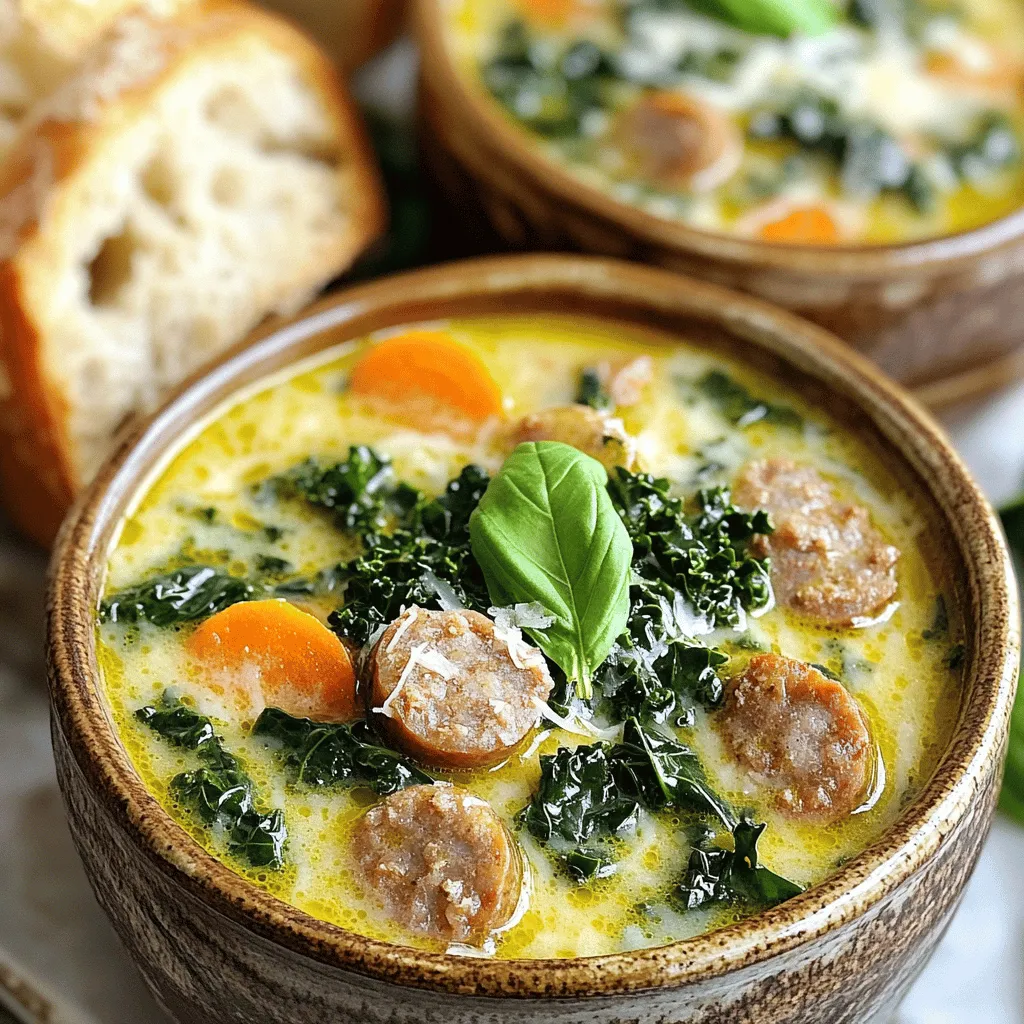 These main ingredients form the heart of the soup. The Italian sausage gives it a rich flavor. The chicken broth adds depth. Fresh vegetables like onion, garlic, carrots, kale, and spinach provide great nutrition. The diced tomatoes offer a nice acidity, balancing the creaminess.