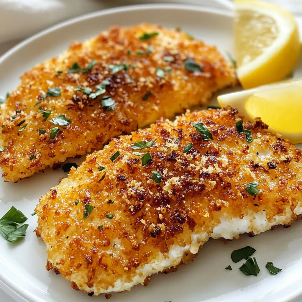 To make your tilapia super crispy, use panko breadcrumbs. Panko is lighter and airier than regular breadcrumbs. This helps create a crunchier crust. Before coating, toast the panko lightly in a pan. This adds flavor and enhances crunch. You can also mix in some crushed cornflakes for added texture. When you bake, make sure to spray oil on top. This helps the crust turn golden and crispy.