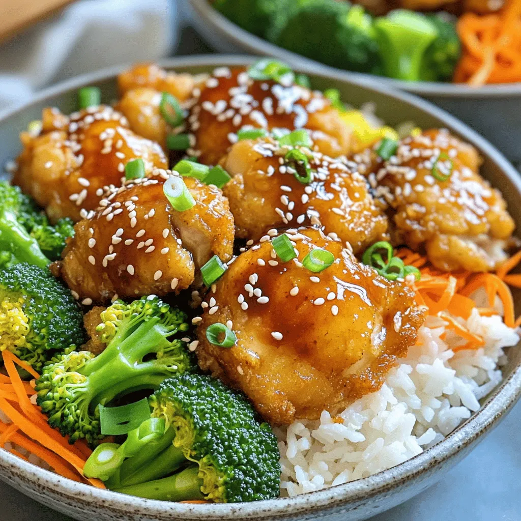 To assemble, start with a generous scoop of jasmine rice in each bowl. Top it with the crispy teriyaki chicken and the blanched broccoli. Add some shredded carrots for color and crunch. For a restaurant-style look, sprinkle sliced green onions and sesame seeds on top. This adds flavor and makes it look beautiful.
