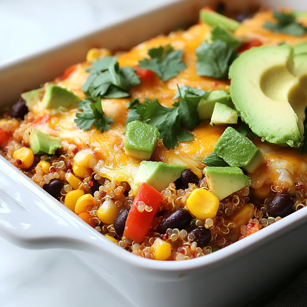 A delicious and hearty casserole packed with quinoa, black beans, and vibrant vegetables.