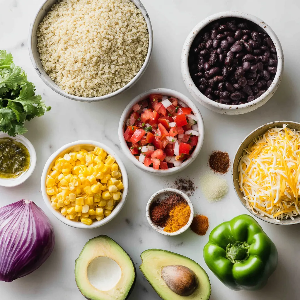 To create this flavorful Fiesta Black Bean Quinoa Casserole, you need fresh, vibrant ingredients. Each one adds its own unique taste. Here’s what you will need: