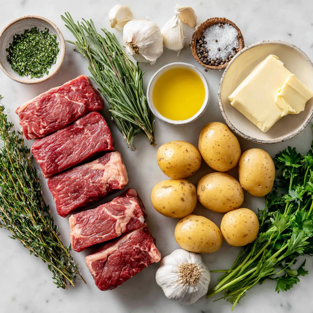 Each ingredient plays a key role in this dish. The sirloin steak provides rich flavor and tender bites. Baby potatoes add heartiness and texture, making this meal filling. Unsalted butter gives a creamy finish, while garlic adds a fragrant kick. Fresh rosemary and thyme bring depth and earthiness to the dish.