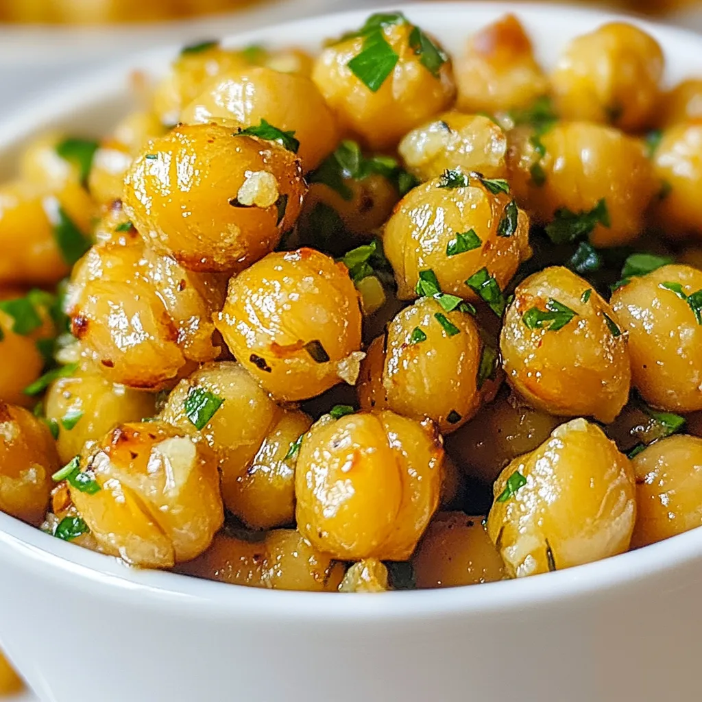 Crispy roasted chickpeas seasoned with garlic and herbs, perfect as a snack or appetizer.