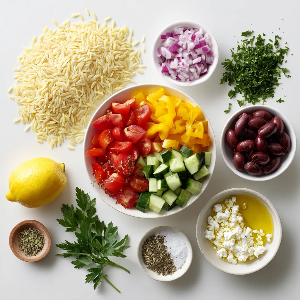 List of Ingredients for Greek Orzo Salad with Feta