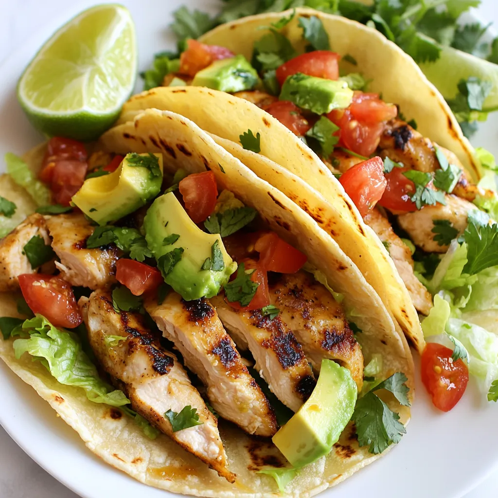 Delicious tacos filled with marinated chicken, fresh toppings, and a hint of lime.