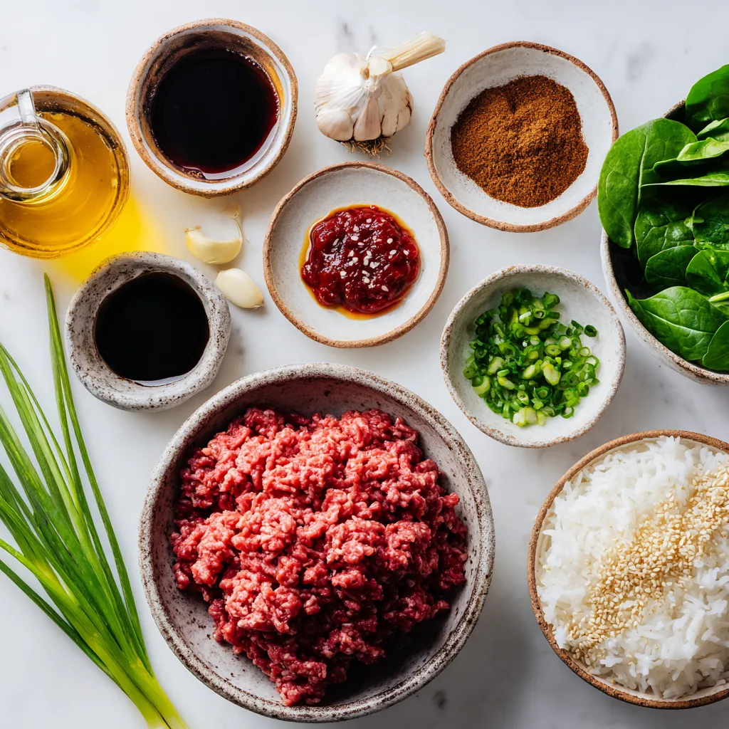 Gochujang is the star. It adds heat and depth. Garlic and ginger give warmth and aroma. Green onions add freshness and crunch. Jasmine rice serves as the perfect bed for the beef. Spinach or bok choy adds color and nutrients. Finally, sesame seeds make a lovely garnish.