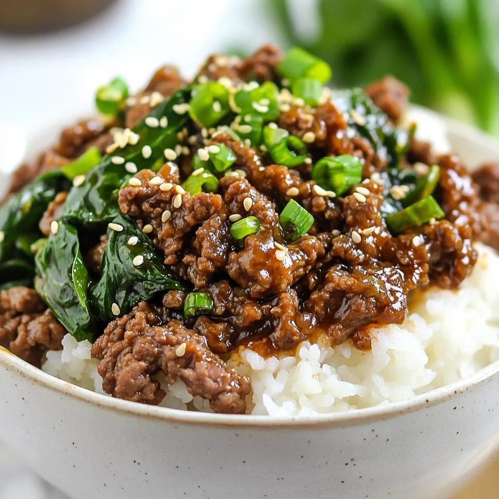 - 1 lb ground beef (or ground sirloin) - 3 tablespoons soy sauce - 1 tablespoon sesame oil - 2 tablespoons brown sugar - 1 tablespoon gochujang (Korean red chili paste) - 2 cloves garlic, minced - 1-inch piece ginger, grated - 2 green onions, finely chopped (plus extra for garnish) - 1 cup cooked jasmine rice (or cauliflower rice) - 1 cup fresh spinach (or bok choy) - 2 teaspoons sesame seeds (for garnish) - Salt and pepper to taste These ingredients make Korean Beef Bowls a delight. Ground beef gives a savory base. You can use ground sirloin for a leaner dish. Soy sauce adds salt and umami. Sesame oil brings rich flavor and a nutty kick. Brown sugar balances the sauce with sweetness. Gochujang is the star. It adds heat and depth. Garlic and ginger give warmth and aroma. Green onions add freshness and crunch. Jasmine rice serves as the perfect bed for the beef. Spinach or bok choy adds color and nutrients. Finally, sesame seeds make a lovely garnish. Gather these ingredients before you start. They make the meal easy and tasty. You can find most at local stores. Make sure they are fresh for the best results. {{ingredient_image_1}} First, take a large skillet and place it on medium heat. Add one pound of ground beef to the skillet. Cook it for about 5 to 7 minutes. As it cooks, break it apart with a spatula. This helps it brown evenly. If you see extra fat, drain it off carefully. In a small bowl, combine the following ingredients: - 3 tablespoons soy sauce - 1 tablespoon sesame oil - 2 tablespoons brown sugar - 1 tablespoon gochujang (Korean red chili paste) - 2 cloves garlic, minced - 1-inch piece ginger, grated Whisk these together until smooth. This sauce adds a lot of flavor to your beef. Now, take the sauce you made and pour it over the browned beef. Mix it well. Let it simmer for 2 to 3 minutes. This step allows all the flavors to come together. Next, stir in two finely chopped green onions. Season with salt and pepper to taste. In another pot or food steamer, add one cup of fresh spinach. Steam it for about 2 minutes until it becomes wilted. If you prefer, you can sauté the spinach in a bit of oil instead. To put your bowls together, start with a scoop of cooked rice. You can use jasmine rice or cauliflower rice. Next, top it with the beef mixture. Add a handful of the wilted spinach on top. Finally, garnish with 2 teaspoons of sesame seeds and some extra green onions for a nice touch. Enjoy your Korean Beef Bowls! - Adjust gochujang to match your spice level. If you like it hot, add more. - Use fresh ingredients for the best taste. Fresh garlic and ginger make a big difference. - Cook the ground beef until it's fully done. Aim for an internal temperature of 160°F. - Simmer the sauce long enough. Let it meld the flavors for about 2-3 minutes. - Add sides like kimchi or pickled veggies for extra crunch. These add great flavor. - Top your bowls with a fried egg or some extra jalapeños if you want more heat. Pro Tips Use Lean Meat: For a healthier option, opt for lean ground sirloin instead of regular ground beef to reduce fat content. Adjust Spice Level: If you prefer less heat, reduce the amount of gochujang or substitute it with a milder chili paste. Fresh Ingredients: Use fresh ginger and garlic for a more vibrant flavor; they make a significant difference in taste. Meal Prep Friendly: Prepare the beef mixture in advance and store it in the fridge for up to 3 days for quick and easy meals. {{image_2}} You can easily make this dish lower in carbs. Just swap jasmine rice for cauliflower rice. Cauliflower rice is light and fluffy. It adds a nice texture without the carbs. Plus, it absorbs the flavors well. This swap keeps the meal tasty and healthy. Want a lighter meat choice? Try ground turkey or chicken instead of beef. Both options keep the dish lean. They also soak up the flavors of the sauce. If you prefer a vegetarian option, use tofu. Tofu is a great protein source. It adds a nice texture and takes on the sauce's taste. To make your bowls even better, add more veggies. Bell peppers and carrots work great. They bring crunch and color to the dish. Mushrooms are another fantastic addition. They give a rich umami flavor that enhances the taste of the beef. Mixing in these ingredients can boost nutrition and flavor. To keep your Korean Beef Bowls fresh, allow the servings to cool first. This step helps avoid condensation in your container. Once cooled, place the beef, rice, and greens into an airtight container. You can store it in the fridge for up to 3-4 days. This makes it easy to enjoy a quick meal later. If you want to save some for later, freeze individual portions. You can keep them in the freezer for up to 3 months. Be sure to use freezer-safe containers to avoid freezer burn. When you're ready to eat, remember to reheat the beef mixture thoroughly before serving. To reheat, you can use the microwave or warm it on the stove. If you choose the stove, add a splash of water to keep the beef moist. This simple tip helps revive the flavors and texture, ensuring your meal tastes just as good as when you first made it. Gochujang is a Korean red chili paste. It adds heat and depth to dishes. In this recipe, I use one tablespoon of gochujang. This gives the beef a sweet and spicy flavor. You can find gochujang in Asian markets or online. It’s a must-have for authentic Korean cooking. Yes, you can prepare the beef and rice in advance. Cook the beef and sauce, then cool it. Store it in the fridge for up to three days. You can also cook the rice ahead. Just keep it in an airtight container. When ready to eat, reheat the beef and rice together for a quick meal. To make it milder, use less gochujang. You can start with one teaspoon. For a spicier kick, add more gochujang or some red pepper flakes. Taste the mixture as you go. This way, you can find the right heat level for your family. Yes, but you need to use gluten-free soy sauce. Regular soy sauce contains wheat. Look for tamari 