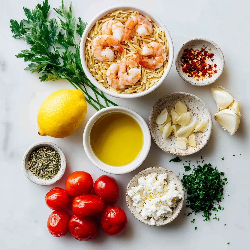 When making Lemon Garlic Shrimp Orzo, you need fresh and flavorful ingredients. Here’s what you will need: