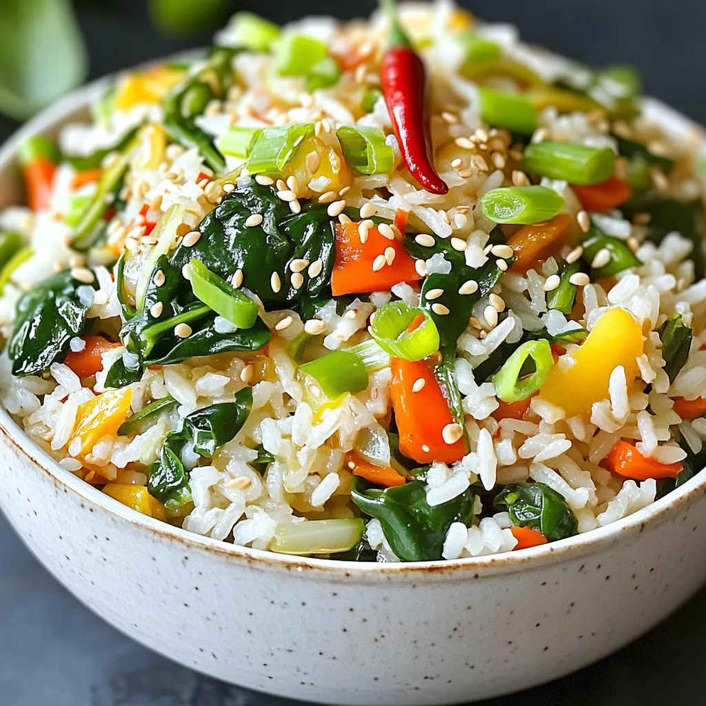 Once your oils and aromatics are ready, it’s time to add the veggies. Toss in 1 cup of mixed vegetables, like carrots, peas, and bell peppers. Sauté these for 3-4 minutes until they soften. After that, add 1 cup of baby spinach. Cook it just until it wilts. This adds color and nutrition to your bowl.