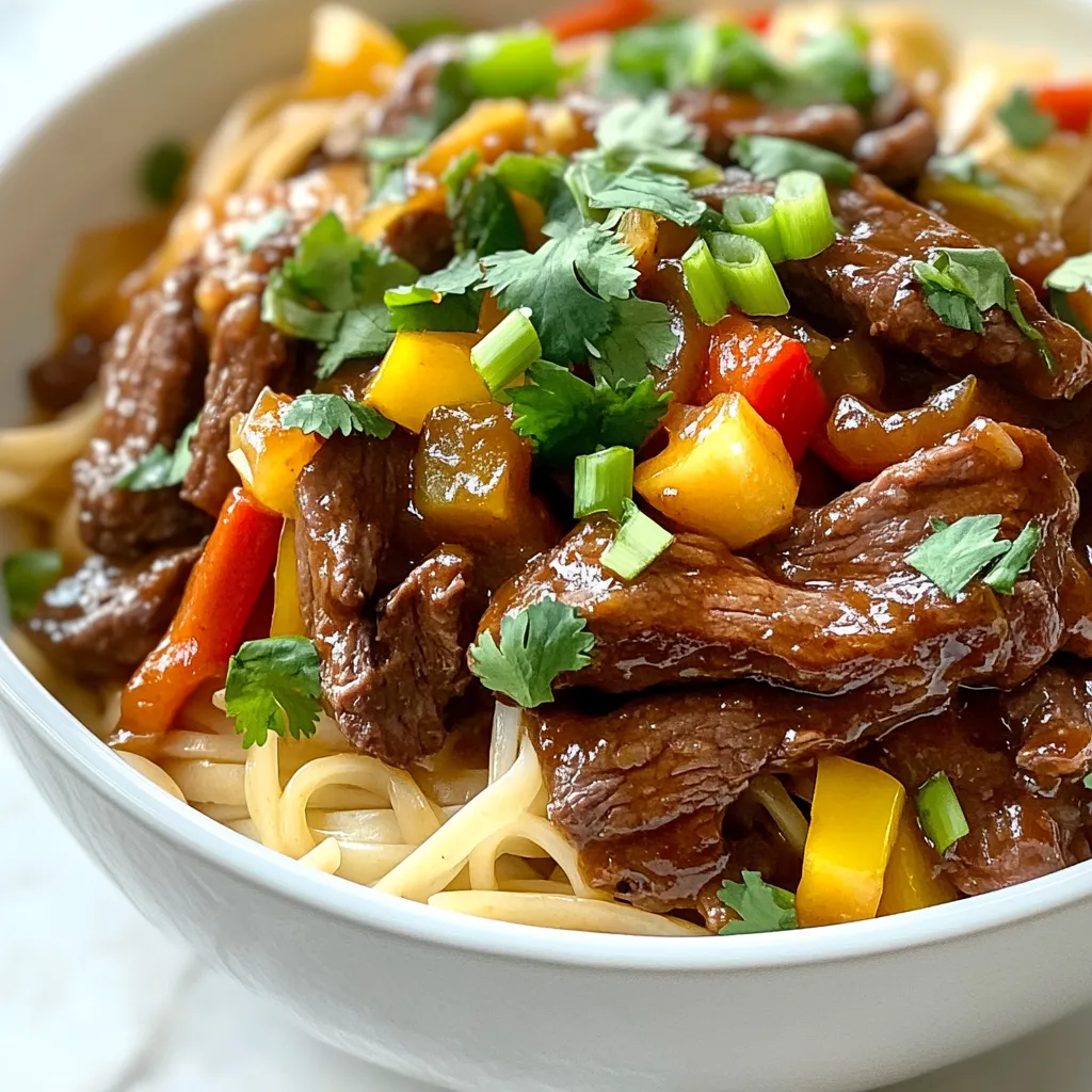 - 8 oz. rice noodles - 1 lb. flank steak, thinly sliced against the grain - 2 tablespoons vegetable oil - 3 cloves garlic, minced - 1-inch piece ginger, grated - 1/4 cup soy sauce - 2 tablespoons brown sugar - 1 tablespoon hoisin sauce - 1 teaspoon sesame oil - Salt and pepper to taste To make Mongolian beef noodles, gather these key items. The rice noodles serve as the base. Flank steak brings rich flavor. The seasonings and sauces create a bold taste. You'll need garlic, ginger, soy sauce, brown sugar, hoisin sauce, and sesame oil. - 1 bell pepper, sliced - 1-2 green onions, sliced (for garnish) - 1/2 cup chopped fresh cilantro (for garnish) You can add bell pepper for extra crunch. Green onions and cilantro add freshness on top. These ingredients elevate the dish and give it more color. - Gluten-free options: Use gluten-free soy sauce and rice noodles. - Vegetarian alternatives: Substitute beef with tofu or mushrooms. If you need gluten-free options, swap regular soy sauce for gluten-free. For a vegetarian dish, tofu or mushrooms work well as a protein swap. These changes keep the dish tasty while meeting dietary needs. {{ingredient_image_1}} To start, soak the rice noodles in warm water. Let them sit for about 20-30 minutes. This helps soften the noodles. Drain the noodles and set them aside for later. Next, we’ll cook the flank steak. Heat a large skillet or wok over medium-high heat. Add 2 tablespoons of vegetable oil. Once the oil is hot, add the thinly sliced flank steak. Make sure not to overcrowd the skillet. Sear the beef for about 2-3 minutes. You want it browned and cooked through. After that, remove the beef from the skillet and set it aside. Now, it’s time to add flavor. In the same skillet, add 3 cloves of minced garlic and 1-inch grated ginger. Stir-fry these for about 30 seconds until they smell great. If you like, toss in sliced bell pepper. Cook this for another 1-2 minutes until it’s tender. Return the cooked beef to the skillet. Pour in the sauce mixture made of soy sauce, brown sugar, hoisin sauce, and sesame oil. Cook everything together for about 2-3 minutes. Stir well to coat the beef and bell pepper. Now, add the drained rice noodles to the skillet. Toss everything to combine and heat through for about 2 minutes. Season with salt and pepper to taste. Finally, serve hot, garnished with sliced green onions and chopped fresh cilantro. Enjoy your meal! - Avoiding overcrowding the skillet: Cook the flank steak in batches. If you add too much meat at once, it will steam instead of sear. This can make the beef tough. Sear each batch for 2-3 minutes until browned. - Perfecting the noodle texture: Soak the rice noodles in warm water for 20-30 minutes. This softens them before adding to the skillet. Drain them well to prevent excess water from making your dish soggy. - Adjusting sweetness and saltiness: You can change the flavor of your sauce to fit your taste. If you prefer a sweeter dish, add more brown sugar. For a saltier kick, increase the soy sauce. Taste as you go to find the right balance. - Best practices for presentation: Garnish with sliced green onions and chopped cilantro. This adds color and fresh flavor. A sprinkle of sesame seeds can also enhance the look. Serve your dish in a wide bowl for a beautiful display. Pro Tips Slice Against the Grain: This ensures the flank steak remains tender and easy to chew. Cutting against the grain shortens the muscle fibers. Soaking Noodles: Soaking rice noodles in warm water helps them soften evenly. Avoid boiling them to prevent overcooking and sticking. High Heat for Searing: Cooking the beef at a high temperature allows for a nice sear, enhancing flavor while keeping the interior juicy. Add Fresh Herbs Last: Incorporating fresh cilantro and green onions at the end preserves their vibrant flavor and color, making the dish more appealing. {{image_2}} You can switch the beef for chicken or pork. Chicken breast works well. Slice it thinly like the beef. Use the same cooking methods. Pork also fits nicely. A pork tenderloin can add a new taste. Just remember to adjust cooking times as needed. For a meat-free dish, use plant-based proteins. Tofu is a great choice. Press it to remove water, then cut it into cubes. Tempeh is another option. It has a firmer texture and absorbs flavors well. You can also try seitan for a chewy bite. Not a fan of rice noodles? You have options! Try egg noodles for a richer flavor. Soba noodles add a nutty taste and are healthy. If you're looking for gluten-free, use zucchini noodles. They add freshness and a fun twist to the dish. To store leftovers, let the dish cool completely. Place the Mongolian beef noodles in an airtight container. Make sure to keep it in the fridge. This way, it stays fresh and tasty. Consume the leftovers within three days for the best flavor. If you want to freeze the noodles, first cool them completely. Place the beef noodles in a freezer-safe container. It’s best to separate the sauce and noodles if possible. To reheat, thaw in the fridge overnight. Warm them in a skillet over low heat or in the microwave. Add a splash of water or broth to keep them moist. Mongolian beef noodles last about three to four days in the fridge. In the freezer, they can last up to three months. After that, the texture and taste may change. Always check for signs of spoilage before eating. The best beef cut for Mongolian Beef Noodles is flank steak. Flank steak has great flavor and a nice texture. It cooks quickly and stays tender when sliced thin. You should always cut against the grain. This helps make each bite easy to chew. You can also try sirloin or ribeye if you want something different. These cuts are also tasty and tender. Yes, you can make this dish gluten-free! First, swap out regular soy sauce for a gluten-free version. There are many brands that offer gluten-free soy sauce. You can also find gluten-free hoisin sauce. This will keep the flavors while removing gluten. Just