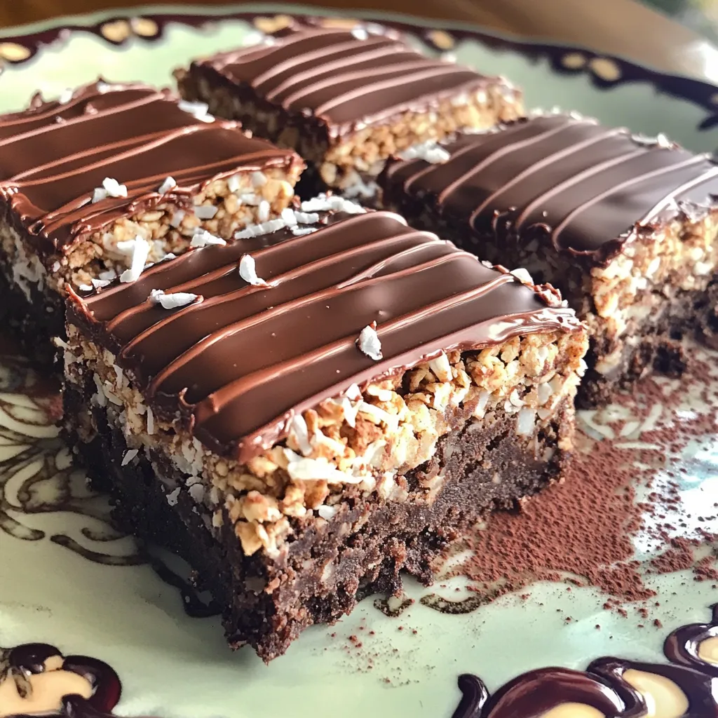 To make these no-bake chocolate coconut bars, gather these items: - 1 cup rolled oats - 1 cup unsweetened shredded coconut - 1/2 cup almond butter (or peanut butter) - 1/2 cup honey or maple syrup - 1/4 cup cocoa powder - 1/2 teaspoon vanilla extract - Pinch of salt - 1/4 cup dark chocolate chips (optional for topping) These ingredients come together to create a tasty treat. Each plays a key role in flavor and texture. You can switch some ingredients if you need to. Here are a few ideas: - Use peanut butter instead of almond butter if you prefer. - Maple syrup can replace honey for a vegan option. - Any nut butter will work in place of almond butter. - If you don’t have cocoa powder, try using carob powder for a different taste. These swaps keep the bars delicious while fitting your needs. Adding toppings can make your bars even better. Here are some fun ideas: - Drizzle with extra melted dark chocolate for richness. - Sprinkle more shredded coconut on top for added texture. - Add chopped nuts for a crunchy bite. - Try sea salt flakes to balance the sweetness. These enhancements can elevate your no-bake chocolate coconut bars to a new level! Start by gathering your dry ingredients. You need rolled oats, shredded coconut, cocoa powder, and a pinch of salt. In a large mixing bowl, combine these ingredients well. Mixing them evenly helps the flavors blend nicely. Make sure there are no clumps. This simple step lays the foundation for your bars. Next, take a smaller bowl. Add almond butter or peanut butter along with honey or maple syrup. Stir until smooth and well mixed. The goal is to create a creamy texture. Then, add vanilla extract to this mixture. This little step adds a nice flavor boost to your bars. Now, it’s time to combine the wet and dry mixtures. Pour the wet mix into the bowl with the dry mix. Use a spatula or your hands to mix everything together. You want a sticky and cohesive dough. Once mixed, prepare an 8x8 inch baking dish. Line it with parchment paper, leaving some paper hanging over the sides. This will help you lift out the bars later. Press the mixture firmly into the dish. Use your hands or a flat object to pack it down evenly. If you want a chocolate topping, melt dark chocolate chips in a microwave-safe bowl. Heat them in 30-second bursts, stirring in between. Once melted, drizzle the chocolate over the pressed mixture. Spread it evenly with a spatula for a smooth finish. This adds a delicious layer to your bars. After that, refrigerate for at least one hour. This helps the bars set, making them easier to cut later. To get the best texture in your no-bake chocolate coconut bars, follow these tips: - Use fresh ingredients: Fresh oats and coconut make a big difference. - Mix well: Ensure the dry and wet ingredients blend evenly. This helps with stickiness. - Press firmly: Pack the mixture tightly in the dish. This keeps your bars from crumbling. - Chill properly: Let the bars set in the fridge for at least an hour. This helps them firm up. Storing your no-bake chocolate coconut bars is simple: - Use airtight containers: Keep them in an airtight container to stay fresh. - Refrigerate: Bars stay best in the fridge. They will last up to a week. - Serve chilled: Enjoy them cold for a refreshing treat. You can also serve them at room temperature. Avoid these common mistakes for perfect bars: - Skipping the salt: A pinch of salt boosts flavor. Don't skip it! - Not packing down: Failing to pack the mixture can lead to crumbly bars. - Overmixing: Mix just enough to combine everything. Overmixing can make the texture off. - Not using parchment paper: Always line your dish with parchment for easy removal. {{image_2}} You can easily add nuts or seeds to your bars. Choose almonds, walnuts, or sunflower seeds. Just chop them into small pieces. Mix them into the dry ingredients before adding the wet ones. This will give your bars a nice crunch. Plus, they add extra flavor and nutrition. Want to change the flavor? Add a few drops of mint or orange extract. This gives your bars a fresh twist. You can also mix in some orange zest for a more intense taste. Just remember to adjust the wet ingredients a bit if you add more liquid flavorings. For a keto version, swap honey for a sugar-free sweetener like erythritol. Use almond butter or sunflower seed butter as your base. To make these bars vegan, simply replace honey with maple syrup or agave nectar. Both options work well without changing the taste. Enjoy these tasty bars while sticking to your dietary goals! To keep your No-Bake Chocolate Coconut Bars fresh, store them in an airtight container. This way, they stay moist and tasty. Place a piece of parchment paper between layers if you stack them. This trick helps prevent sticking. Make sure to seal the container tightly to keep out air and moisture. These bars can last up to a week at room temperature. However, I recommend refrigerating them for the best taste and texture. In the fridge, they can last up to two weeks. The cool storage keeps them firm and prevents melting. If you live in a hot area, always store them in the fridge. For longer storage, you can freeze the bars. Wrap each bar tightly in plastic wrap. Place the wrapped bars in a freezer-safe bag or container. They can last up to three months in the freezer. When you want to eat one, just take it out and let it thaw at room temperature for about 30 minutes. Enjoy a sweet treat anytime! Yes, you can. Almond butter is my favorite, but peanut butter works too. You can also try cashew or sunflower seed butter. Each nut butter adds a unique taste and texture. Just make sure it is creamy. This helps the bars stick together well. To make the bars vegan, use maple syrup instead of honey. Also, choose a plant-based nut butter. Almond butter and peanut butter are great choices. Finally, check that your chocolate chips are dairy-free. This makes the bars completely vegan and delicious. Absolutely! Adding protein powder boosts the 
