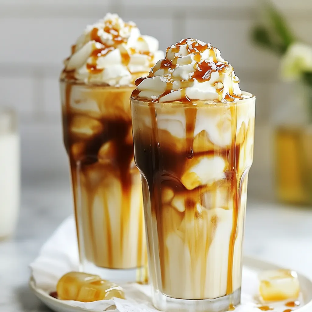 Serve in tall glasses with a decorative straw and a small drizzle of caramel on the rim for an extra touch of elegance.