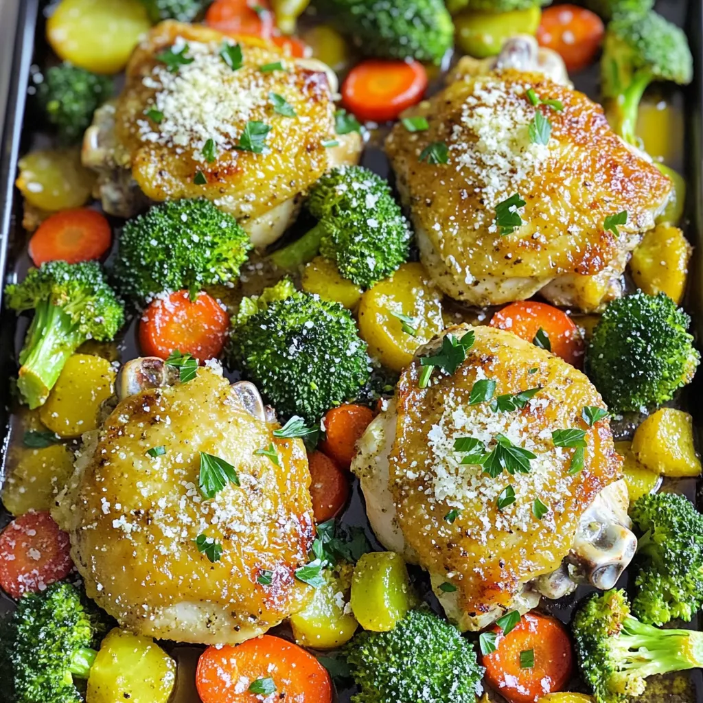 Looking for a quick and delicious dinner idea? Try this Savory Sheet Pan Garlic Parmesan Chicken & Veggies recipe! With juicy chicken thighs, vibrant veggies, and a flavorful garlic-parmesan marinade, this meal is easy to prepare and packed with taste. Just one pan means minimal cleanup too! Click through to explore this delightful recipe and impress your family tonight! #SheetPanRecipes #GarlicParmesan #EasyDinners #HealthyEating