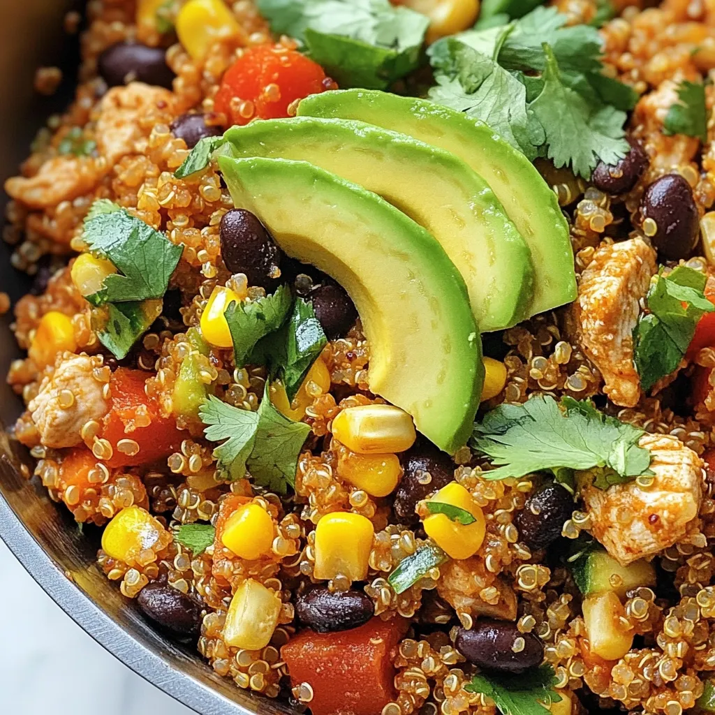 A flavorful and nutritious skillet dish featuring quinoa, chicken, and southwestern spices.