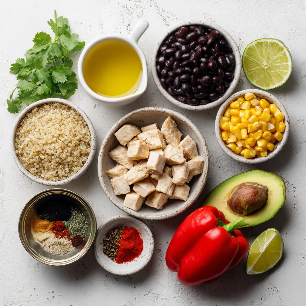 To make this Southwest Chicken Quinoa Skillet, gather these key ingredients: