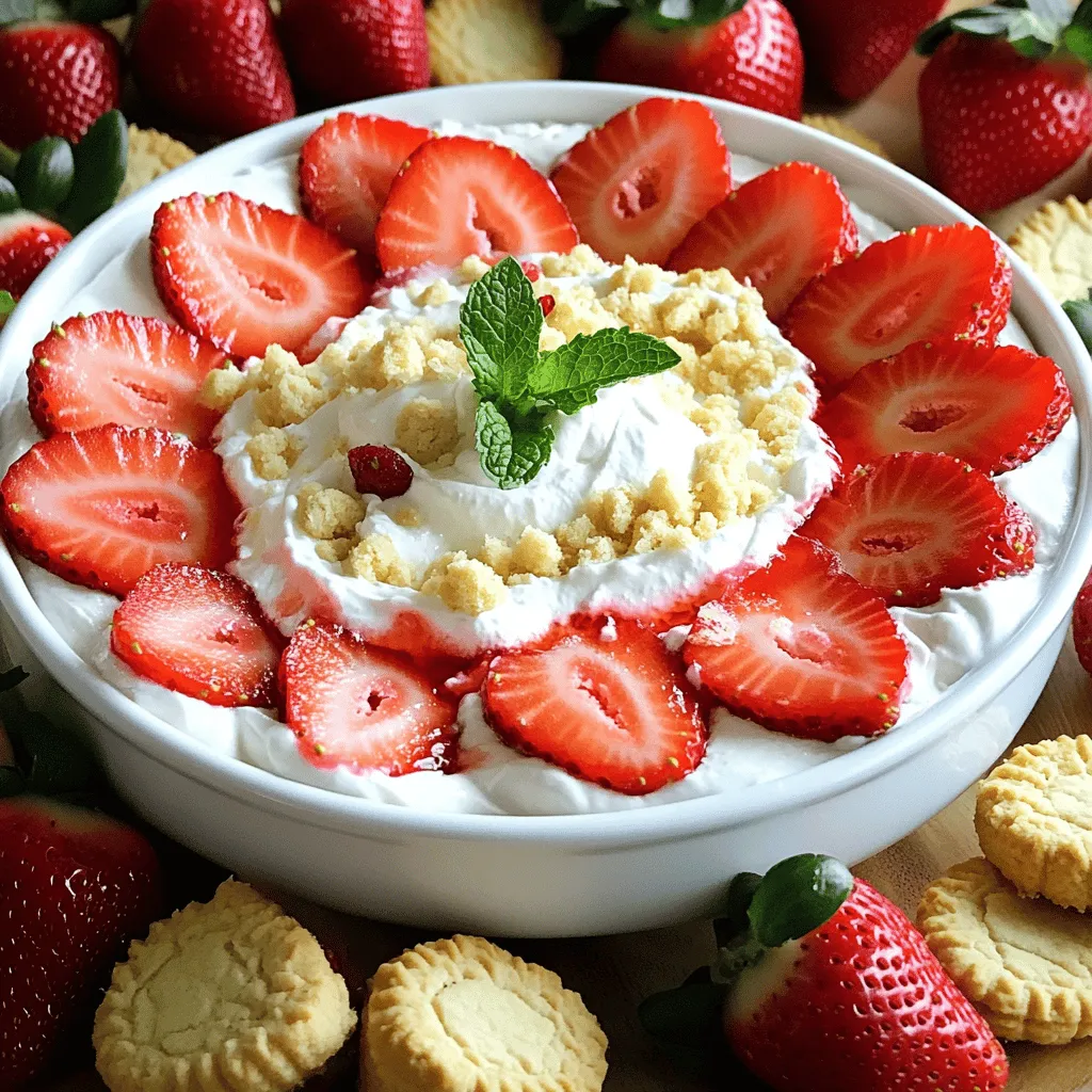 Garnishing your dip makes it more fun. Top it with extra shortbread and fresh strawberry slices. You can also sprinkle crushed cookies for a crunchy look. Use a colorful platter to serve the dip. Bright colors make it pop and catch the eye.