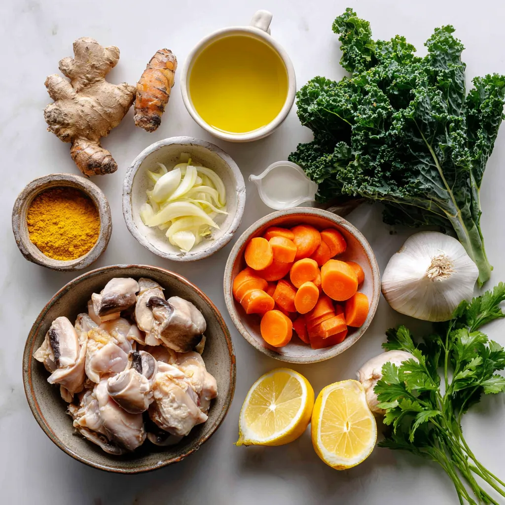 For this Turmeric Ginger Chicken Soup, you need fresh, vibrant ingredients. Here is what you’ll need: