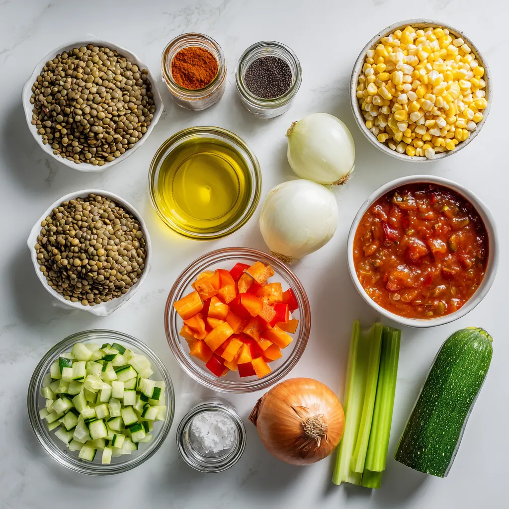 These main ingredients form the heart of your veggie packed lentil chili. Lentils are rich in protein and fiber. Fresh veggies add color and nutrients. You get a tasty mix that warms you inside.